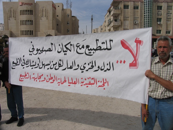 نفذت اللجنة التنفيذية العليا لحماية الوطن ومجابهة التطبيع اعتصاماً في ساحة مسجد الكالوتي بالقرب من السفارة الإسرائيلية في عمان بعد صلاة الجمعة، وذلك في الذكرى الثامنة عشرة لتوقيع معاهدة وادي عربة.