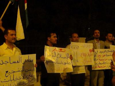 p style=text-align: justify; dir=RTLومن بين الشعارات التي رفعت خلال الاعتصام: الإصلاح ليس مكرمة ملكية بل حق شعبي.. التقسيم الوحيد في مجتمعنا هو بين كل الشعب من جهة.. وكل الفاسدين والمسيطرين على القرار من جهة أخرى.. نعم للإصلاح الشامل وقانون انتخاب عصري.. منابر المساجد ليست للتشجيع على الانتخابات.. حل قضية البورصات بأسرع وقت.. حق العودة ثابت مقدس لدى كل الأردنيين../p