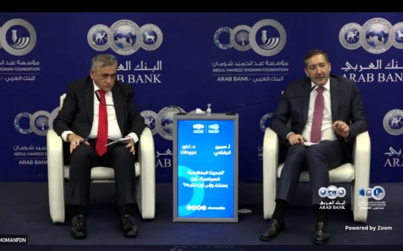 أسعد الله مساءكم جميعا، بداية اسمحوا لي أن أتوجه بالشكر لمنتدى مؤسسة عبدالحميد شومان وللحضور الكريم وللصديق العزيز معالي الأستاذ الدكتور نذير عبيدات