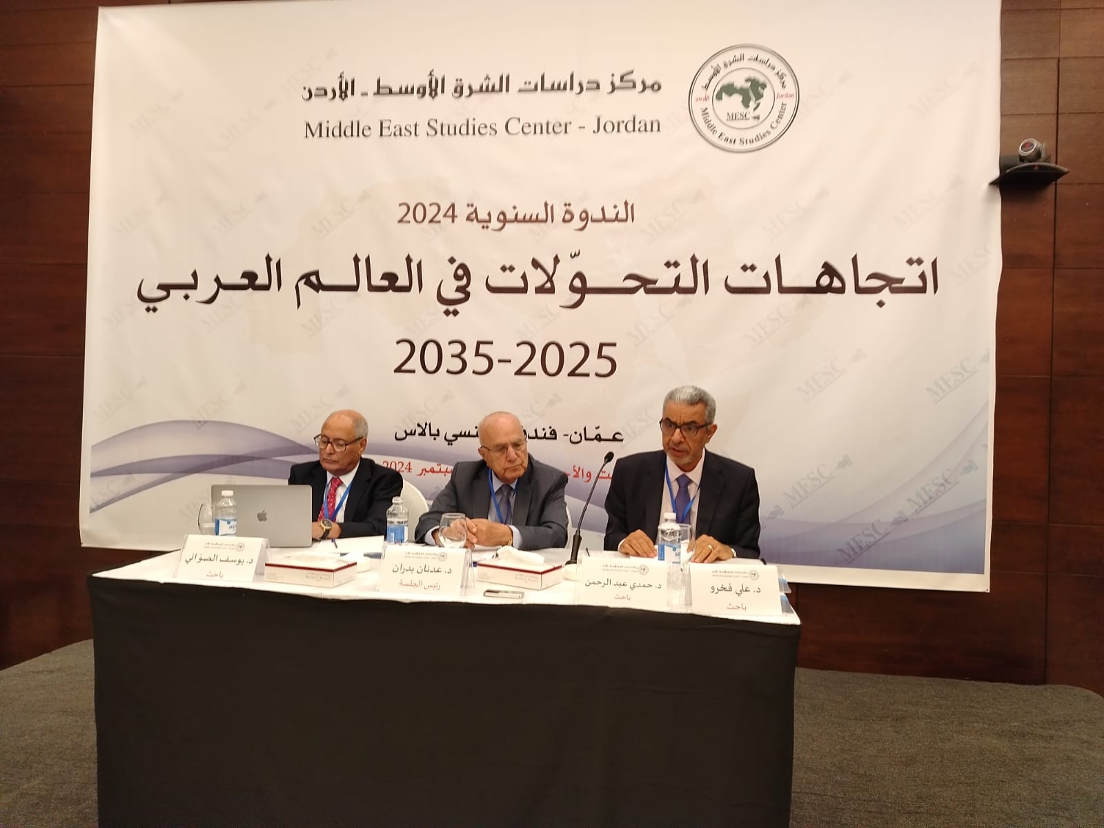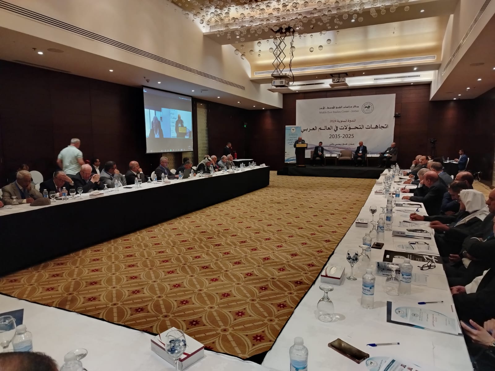 انطلقت اليوم أعمال الندوة التي يقيمها مركز دراسات الشرق الأوسط بعنوان "اتجاهات التحولات في العالم العربي 2025-2035" بمشاركة شخصيات سياسية وأكاديمية من الأردن وثمان دول عربية تبحث أهم وأخطر التحولات في العالم العربي خلال العشر سنوات القادمة لا سيما بعد الحرب على غزة وتزايد تهديدات الامن العربي من طرف إسرائيل في حرب الإبادة على غزة واختراقات المنطقة ودور النظام الدولي الجديد والنظام الاقليمي في رسم مستقبل العالم العربي، وما هي أكبر التحديات التي تواجه العالم العربي ومستقبل العمل العربي المشترك في جامعة الدول العربية والاتحاد المغاربي ومجلس التعاون الخليجي.