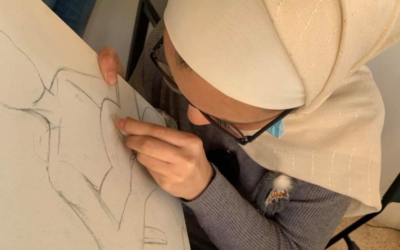 وتتابع: "علمناهم كيف يمسكون القلم، والورق والدهان واللوحات، وعلمناهم رسوم الخطوط من خلال الخطوط النافرة وتحسسها باليد".