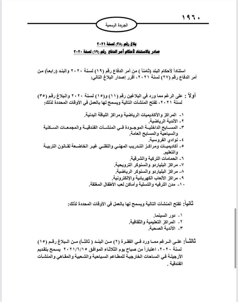 من 15 الشهر الحالي.. الحكومة تسمح لمن مضى 21 يوماً على تلقيه الجرعة الاولى بالتجول خلال ساعات الحظر