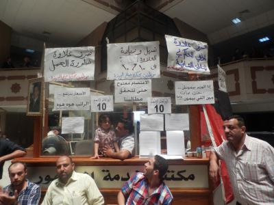 ورفع الموظفون عدداً من الشعارات في صالة قصر العدل الرئيسية منها "إذا الوزير لا يمون من الذي يمون!!".."الاسعار ترتفع..والراتب هو هو".."الاعتصام قائم حتى تتحقق مطالبنا".
