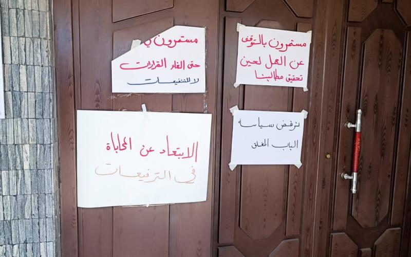 وأشاروا في البيان إلى أن الإدارة أعادت صياغة قراراتها التي احتجوا عليها على نحو "شكلي"، وبينوا أن هذه الصياغة تضمنت إصرار الإدارة على ممارسة "المحاباة والتمييز لصالح الفئة ذاتها من الموظفين".
