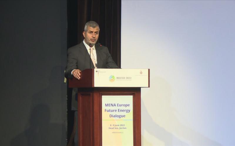 وأوضح الخرابشة خلال كلمة له في مؤتمر "حوار الطاقة المستقبلية للشرق الأوسط وشمال إفريقيا وأوروبا"، أن "لموقع (الأردن) دور مهم، حيث نهدف أن يكون الأردن مركزًا إقليميا لتبادل الطاقة بكافة أشكالها".