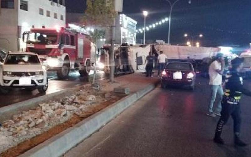 وفاة و6 إصابات بتصادم شاحنة مع 3 مركبات بشارع الحرية في عمان