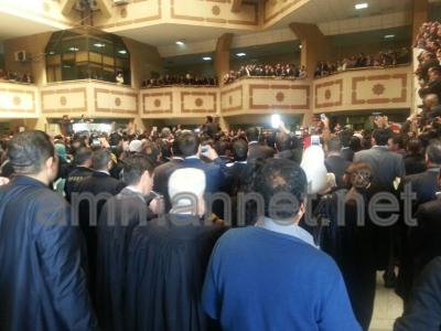 انطلق مجموعة من المحامين في مسيرة من أمام قصر العدل باتجاه مجلس النواب في منطقة العبدلي بعمّان، الثلاثاء، وذلك بعد تنفيذهم وقفة احتجاجية في قصر العدل احتجاجاً على استشهاد زميلهم القاضي في محكمة بداية عمّان رائد زعيتر على يد القوات الإسرائيلية في معبر الكرامة بالأمس.