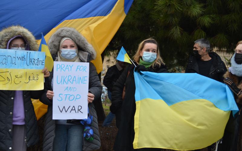 وقفة احتجاجية للجالية الأوكرانية أمام حديقة الصداقة الأوكرانية الأردنية في عمان تنديداً بالغزو العسكري