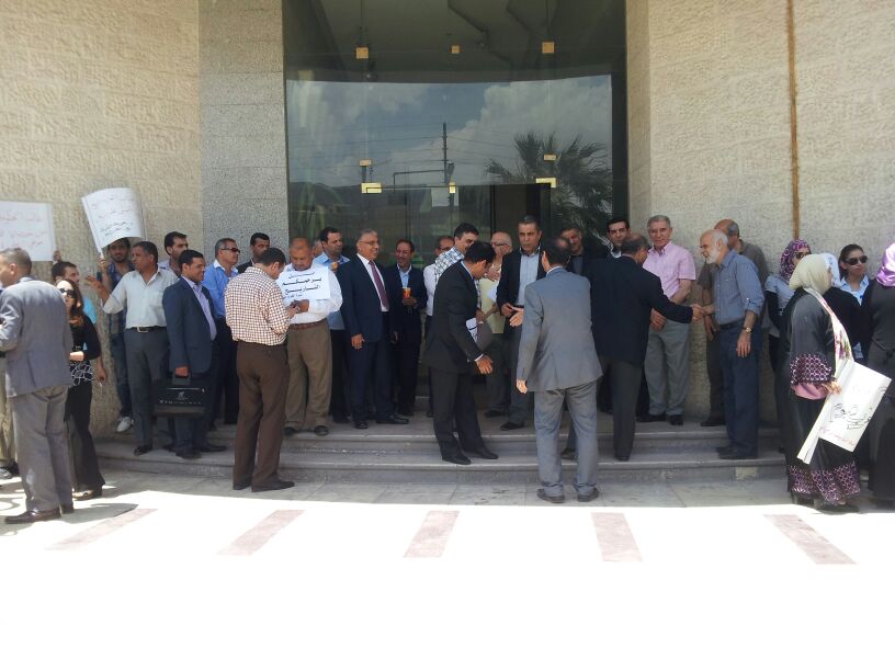 شارك العشرات من الصحافيين في الوقفة التضامنية التي دعت اليها نقابة الصحافيين أمام مقر صحيفة العرب اليوم للتضامن مع الصحيفة التي تعاني وضعاً صعباً بعد توقيف ناشرها على اثر قضية بينه وبين احد المستثمرين