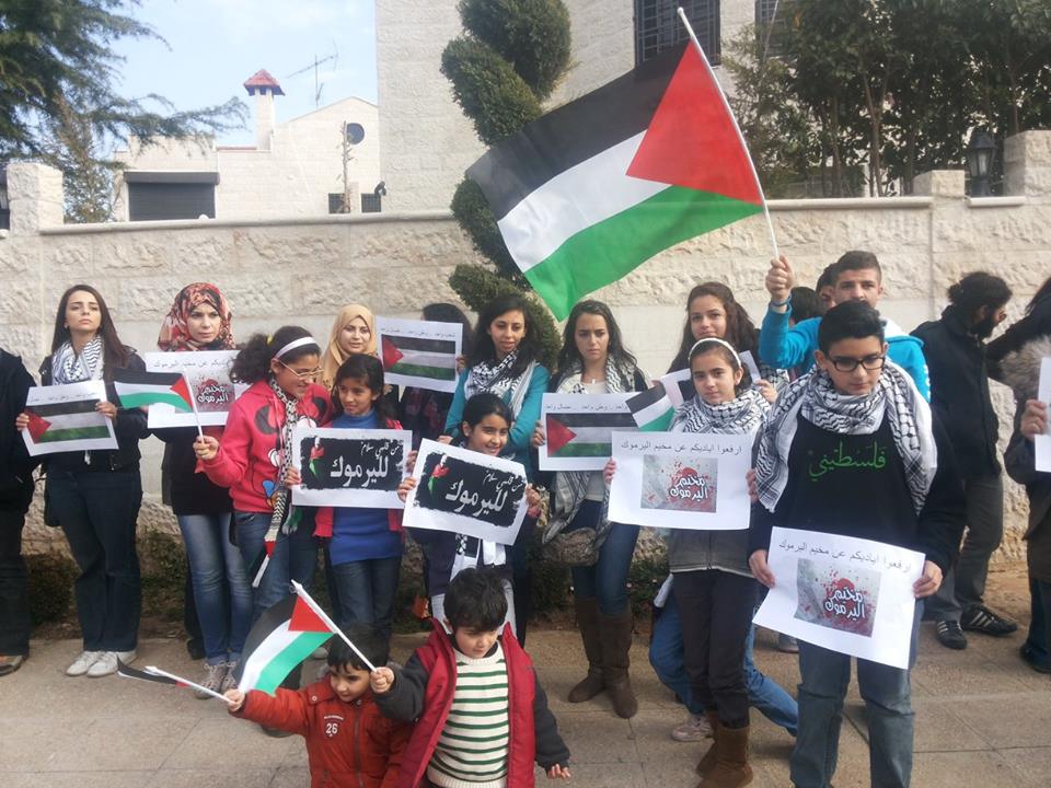 نفذت مجموعة من الحراكات الشبابية والشعبية وقفة تضامنية مع اهالي مخيم اليرموك في سورية ظهر السبت أمام مقر الصليب الأحمر في عمان تحت شعار "أنقذوا مخيم اليرموك".