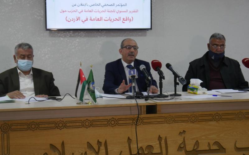 حذرت لجنة الحريات وحقوق الإنسان في حزب جبهة العمل الإسلامي من استمرار نهج التضييق على الحريات العامة والحياة السياسية والنقابية، وغياب لغة الحوار والإصرار على التراجع الديمقراطي، مما يفاقم من حالة الاحتقان الشعبي والأزمات التي يمر بها الوطن سياسياً واقتصادياً واجتماعياً، مشيرة إلى تراجع ترتيب الأردن في مختلف المؤشرات المتعلقة بالحياة السياسية والحريات وتصنيفه كدولة غير حرة وسلطوية.