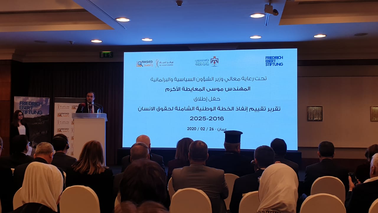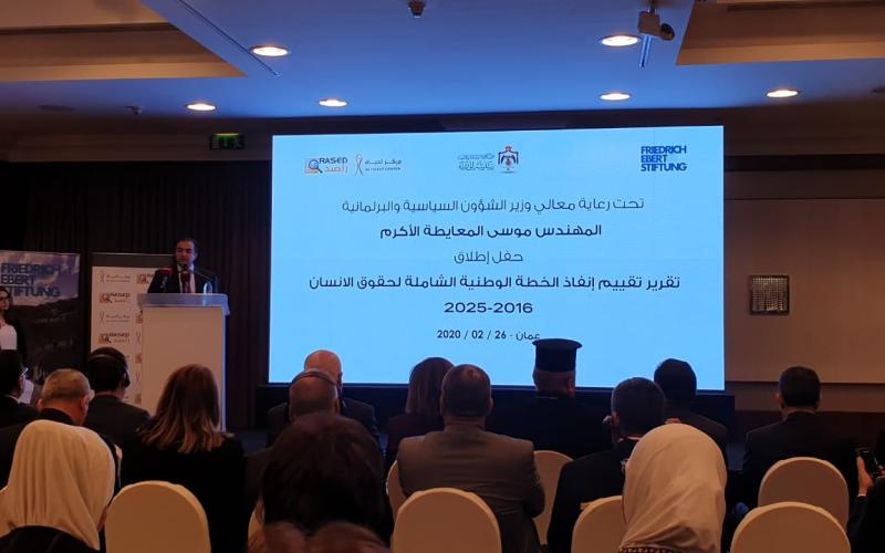 وقال بني عامر في حفل اطلاق تقييم انفاذ الخطة بالتنسيق مع مكتب التنسيق الحكومي لحقوق الانسان في رئاسة الوزراء وبالشراكة مع مؤسسة فريدريش ايبرت، إن خلاصة التقييم تؤكد