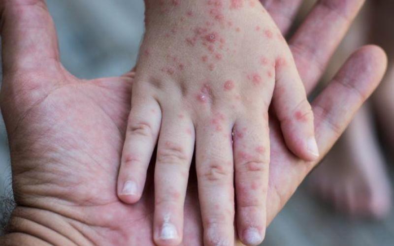 وبين أنه بعد مضي أيام عدة، يصاب المريض بطفح يظهر عادة على الوجه وأعلى العنق، وخلال 3 أيام تقريباً، يهبط الطفح لأسفل الجسم، فيطال اليدين والقدمين، مشيرا الى أن الطفح يدوم بين 5 و6 أيام ثم يختفي بعدها، ويحدث ذلك بين 7 و18 يوماً عقب التعرض للفيروس، ومتوسطها 14 يوماً.