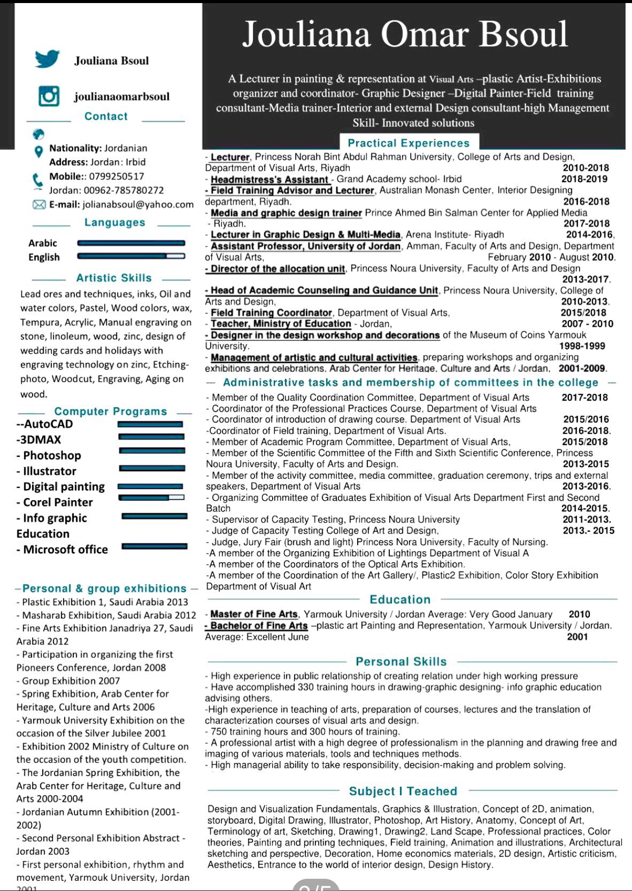 بكالوريوس فنون تشكيلية \ جامعة اليرموك.