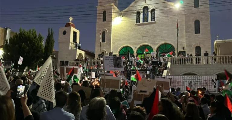 عمّان- أقيم في كاتدرائية "دخول السيد إلى الهيكل" -كبرى الكنائس الأرثوذكسية في العاصمة الأردنية عمّان- اعتصاما حاشدا تضامنا مع قطاع غزة ورفضا لجرائم الإبادة التي يرتكبها الاحتلال في القطاع وعموم فلسطين