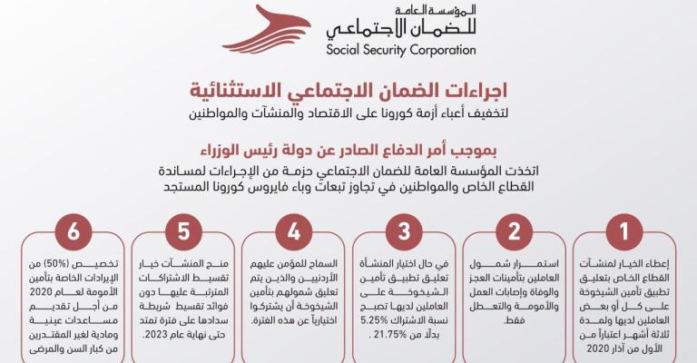 قال الناطق باسم الضمان الاجتماعي موسى الصبيحي الخميس، إن تعليق تطبيق تأمين الشيخوخة في منشآت القطاع الخاص، لمدة 3 أشهر اعتباراً من الأول من آذار/مارس 2020 "اختياري"، بحيث يترك الخيار لمؤسسات القطاع