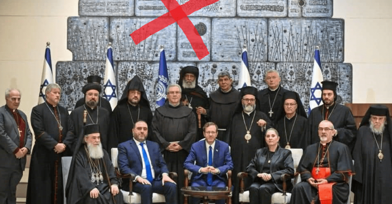 نحن الموقعون أدناه، أبناء هذه الأرض الفلسطينية المقدسة المحتلة، نضم صوتنا الجهور إلى كل الأصوات الأخرى التي أدانت وتلك التي تدين اللقاء المخجل والصادم الذي تم بين ممثلي بعض الكنائس المسيحية في القدس
