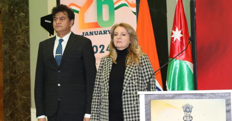 عمان نت - احتفلت السفارة الهندية اليوم الجمعة في الأردن، باليوم الجمهوري الهندي الـ75 ، وتخلل الاحتفال كلمة ا سعادة السفير الهندي "أنور حليم" قال فيها إن هذا اليوم هو يوم عظيم ومميز للهند ، مشيراً إلى