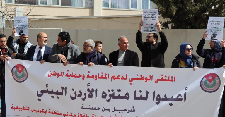 أقام الملتقى الوطني لدعم المقاومة وحماية الوطن ظهر اليوم الثلاثاء، ا عتصامًا شعبيًا أمام سلطة وادي الأردن، وذلك للمطالبة بعدم تجديد العقد الذي يمنح منتزه الأردن البيئي في الأغوار الشمالية لمنظمة