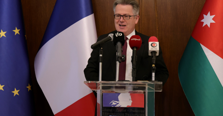 عمان نت - اكد السفير الفرنسي في عمان اليكسي لوكوور غرانميزون دعم فرنسا الكامل للاردن "الدولة الصديقة والحليفة" في مواجهة التحديات السياسية الاقتصادية والامنية. وقال السفير الفرنسي في مؤتمر صحفي اليوم