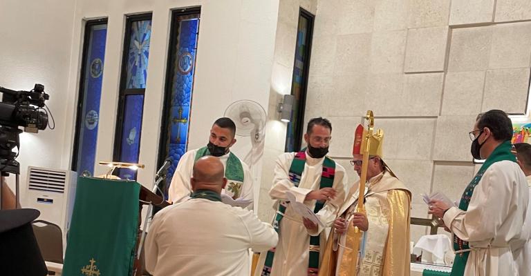 داود كتاب- المغطس الاليكتروني بارك المطران سني إبراهيم عازر رئيس الطائفة اللوثرية في الأردن والأراضي المقدسة الأحد تنصيب القس عماد موسى حداد راعي كنيسة الراعي الصالح الانجيلية اللوثرية بحضور أبناء