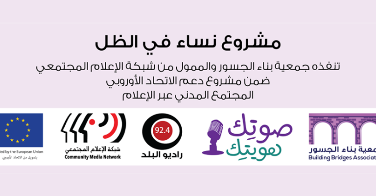 نفذت جمعية بناء الجسور بتمويل من شبكة الإعلام المجتمعي ضمن مشروع دعم الإتحاد الأوروبي للمجتمع من خلال الإعلام صوتك هويتك عشرين حلقة إذاعية تحت مسمى نساء في الظل بودكاست على موقع الجمعية ومجموعة من