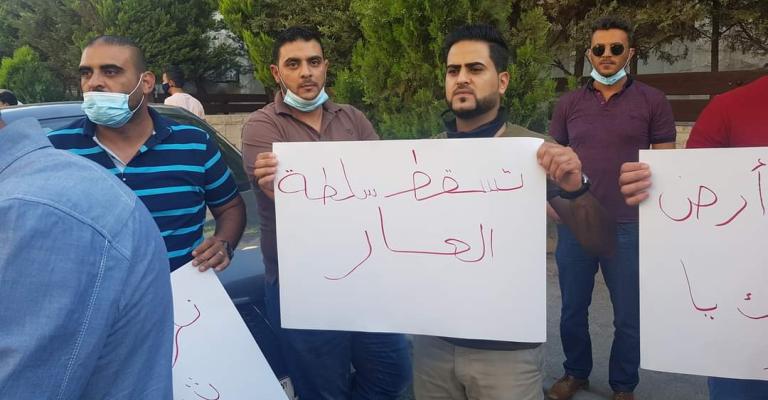 اعتصم العشرات بعد عصر اليوم الجمعة امام السفارة الفلسطينية في عمان احتجاجا على مقتل الناشط الفلسطيني نزار بنات بعد تعرضه للتعذيب من قوات امنية تابعة للسلطة الفلسطينية بعد اعتقاله من منزله في مدينة