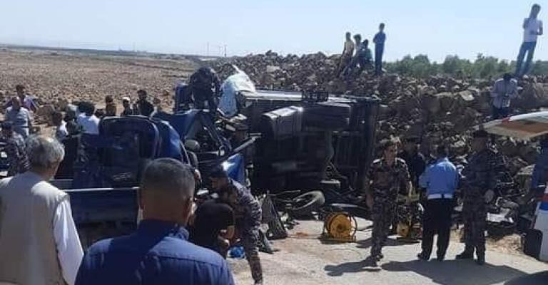 توفي 8 أشخاص على الأقل، وأصيب عدة أشخاص الثلاثاء، إثر حادث سير بين مركبتين (بيك أب) في البادية الشمالية في محافظة المفرق، وفقا لمديرية الأمن العام. وقالت المديرية، إنّ فرق الدفاع المدني تتعامل مع