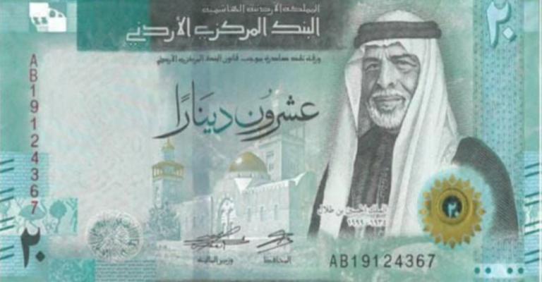 قال البنك المركزي الأردني، إنه سيبدأ بطرح الإصدار الخامس من فئة العشرين دينارا في التداول، والتي يزين وجهها صورة الملك الحسين بن طلال، طيب الله ثراه، اعتباراً من الثلاثاء، جنبا إلى جنب مع فئة العشرين