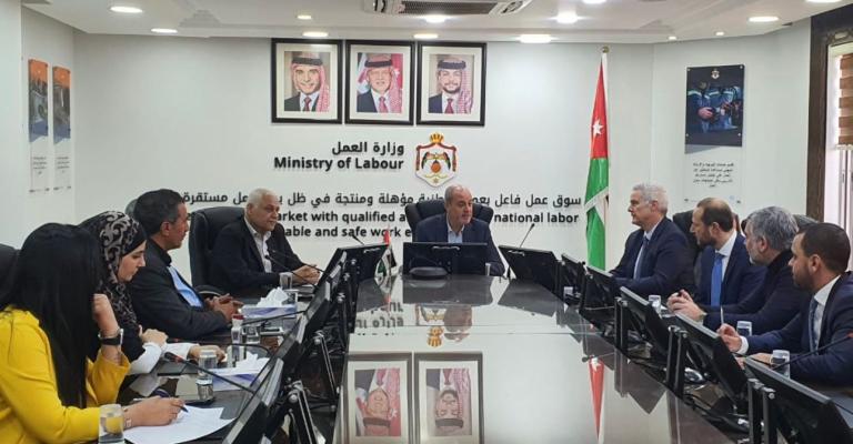رعى وزير الصناعة والتجارة والتموين ووزير العمل يوسف الشمالي اليوم الخميس 3/2/ 2023 في مقر الوزارة توقيع عقد عمل جماعي بين النقابة العامة للعاملين في النقل الجوي والسياحة ممثلة برئيس النقابة يوسف قنب