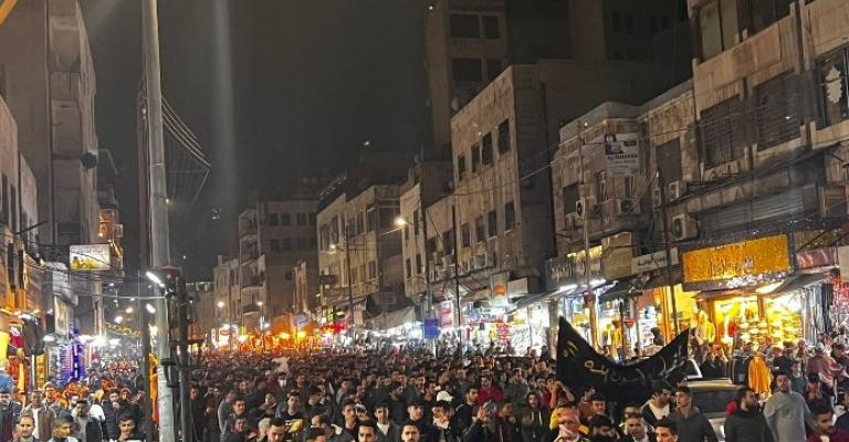 انطلقت مسيرة بعد صلاة عشاء الخميس من أمام مسجد جعفر الطيار في حيّ الطفايلة وسط العاصمة عمان، باتجاه منطقة وسط البلد، وذلك احتجاجا على غلاء الأسعار والمطالبة بتخفيض أسعار المحروقات. وطالب المشاركون