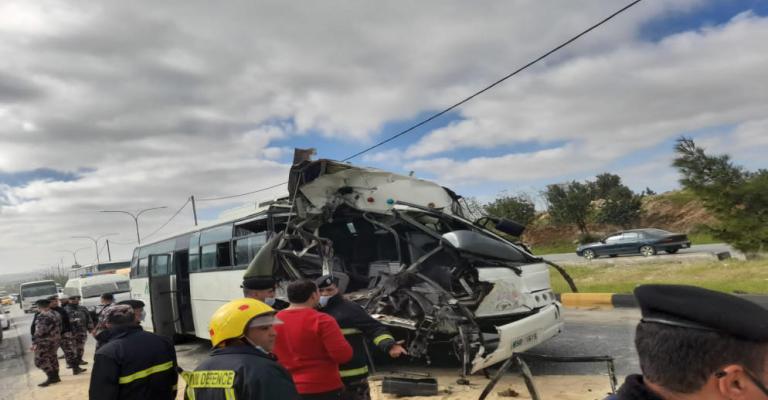 قالت إدارة السير إن السبب المباشر لحادث "الحافلة والقلاب" يوم أمس على جسر النعيمة في إربد والذي أصيب فيه 40 شخصاً، عدم أخذ احتياطات السلامة المرورية أثناء القيادة من قبل سائق الحافلة مما أدى لصدمها