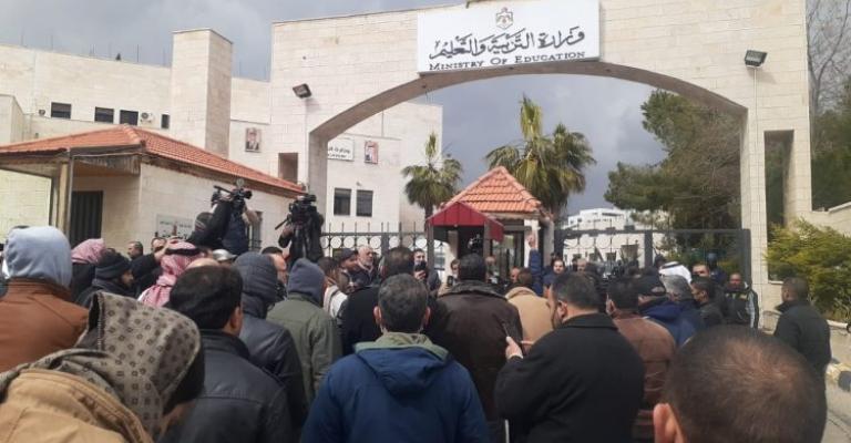 اعتصم معلمون اليوم الثلاثاء، أمام وزارة التربية والتعليم، احتجاجا على القرارات التعسفية، والمماطلة بإعادة المحالين للتقاعد المبكر والاستيداع. وجاءت الوقفة الاحتجاجية – بالرغم من الأجواء الباردة –