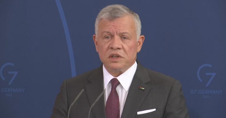 قال جلالة الملك عبدالله الثاني، الثلاثاء، إن الأردن ملتزم بإيجاد حل سلمي لقضايا المنطقة العربية وخاصة القضية الفلسطينية. وأضاف جلالته، خلال تصريحات صحفية مشتركة مع المستشار الألماني أولاف شولتس في