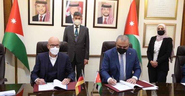 عمّان- 7/12/2021- وقعت الحكومتان الأردنية والالمانية على اتفاقية المرحلة الاولى من قرض ميسر من خلال بنك الاعمار الالماني (KfW) بقيمة (50) مليون يورو، للمساهمة في تمويل مشروع إنشاء المدارس الحكومية