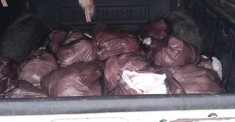 ضبط قسم الرقابة والتفتيش الصحي في بلدية جرش الكبرى صباح اليوم مركبة تقوم بتنزيل كميه من الدجاج من الصندوق الخلفي، وبعد تفتيش المركبة تبين بوجود دواجن غير صالحة للاستهلاك البشري وفق طريقة التحميل