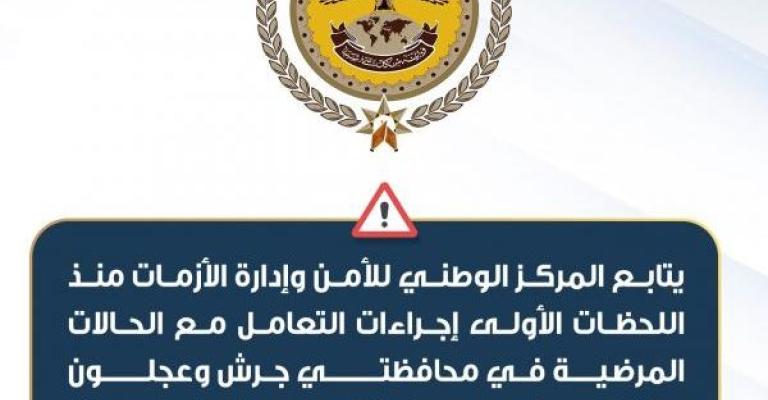 أكد المركز الوطني للأمن وإدارة الازمات أنه يتابع منذ اللحظات الأولى إجراءات التعامل مع الحالات المرضية في محافظتي جرش وعجلون وبالتنسيق مع وزارة الصحة والجهات ذات العلاقة. وكان ادخل 11 حالة اشتباه