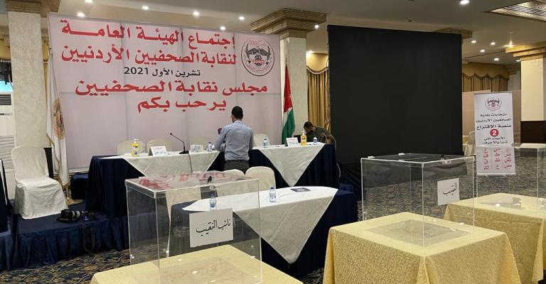 تقرر تأجيل انتخابات نقابة الصحافيين الأردنيين، الجمعة، لعدم إكتمال النصاب. ويصل عدد الصحفيين والصحفيات المدرجين على سجل الصحفيين الممارسين إلى 1142، فيما يبلغ "النصاب القانوني بناء على ذلك لعقد