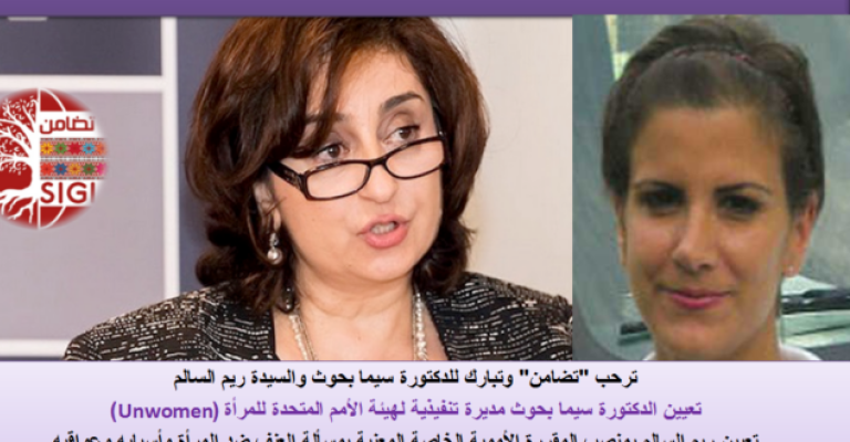 تعيين الدكتورة سيما بحوث مديرة تنفيذية لهيئة الأمم المتحدة للمرأة (Unwomen) تعيين ريم السالم بمنصب المقررة الأممية الخاصة المعنية بمسألة العنف ضد المرأة وأسبابه وعواقبه أعلن الأمين العام للأمم المتحدة
