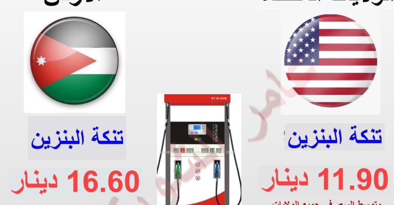 كتب باحث اقتصادي متخصص في شؤون النفط والطاقة عامر الشوبكي اسعار البنزين في الاردن اعلى بنسبة 40% من متوسط سعر البنزين في الولايات المتحدة، بعد ان وصل في الاردن سعر البنزين اوكتان90 الى 83 قرش لكل لتر