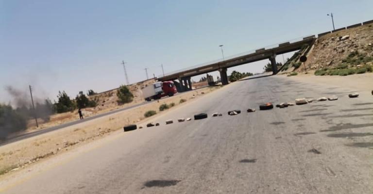 بعد إعلان افتتاح معبر جابر- نصيب بصورة كاملة يوم أمس ووقف التصاريح المسبقة؛ قطع مسلحو المعارضة السورية في ريف درعا يقطعون الأوتوستراد الدولي دمشق – عمان على بعد نحو 10 كيلو مترات عن معبر نصيب الحدودي/