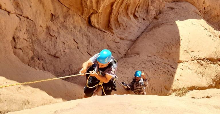 قال الناطق الإعلامي باسم مديرية الأمن العام إن فرق الإنقاذ المتخصصة والعاملة في مديرية دفاع مدني العقبة تعاملت صباح اليوم مع شخص علق على أعلى جبل بارتفاع يصل إلى (250)م بمنطقة الديسة، الأمر الذي