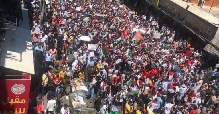 انطلق الآلاف اليوم الجمعة بعد الصلاة من المسجد الهاشمي في اربد للتضامن مع فلسطين والقدس وغزة . وهتف المشاركون في المسيرة بصوت واحد وحيوا الشهداء والمرابطين والمجاهدين في فلسطين كافة. كما حيوا كتائب