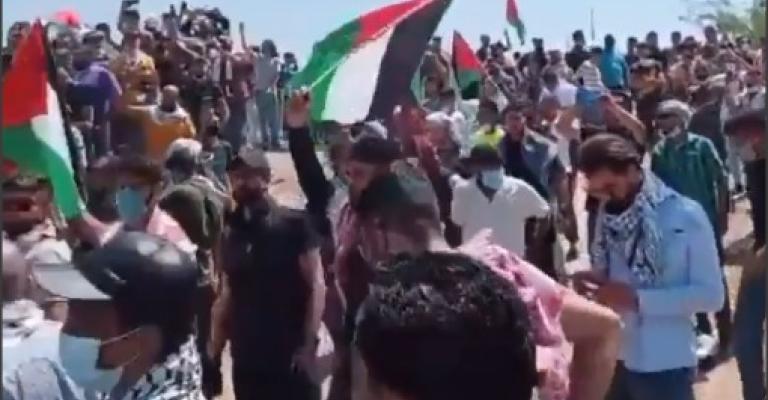 تداول ناشطون عبر مواقع التواصل الاجتماعي في الداخل الفلسطيني فيديو تم تصويرة من #الحدود #الفلسطينية في #الأغوار للحشود الأردنية الغفيرة في الأغوار والذي تجمهروا للتضامن مع إخوتهم في فلسطين المحتلة