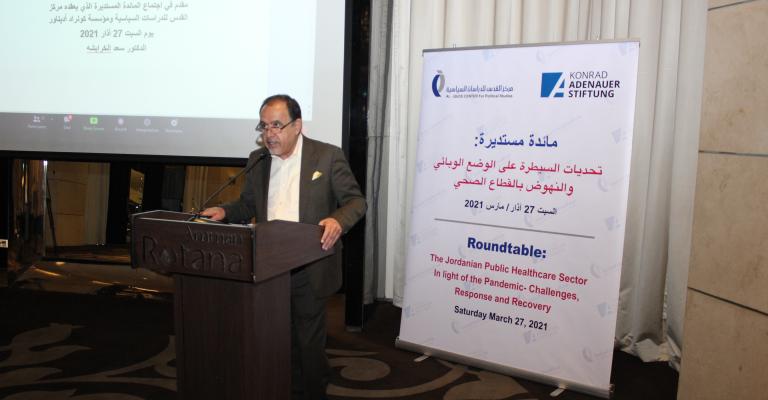 نظم مركز القدس للدراسات السياسية مائدة مستديرة (هجينة) بعنوان "تحديات السيطرة على الوضع الوبائي والنهوض بالقطاع الصحي"، بالتعاون مع مؤسسة كونراد أديناور. شارك في أعمال المادة المستديرة نخبة من أعضاء