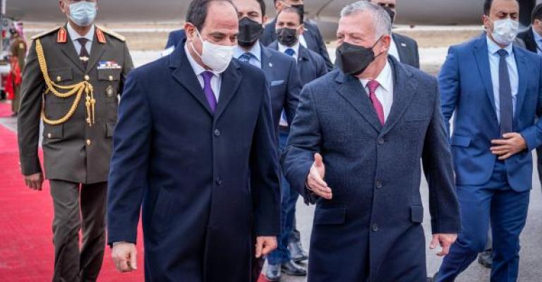 استقبل الملك عبدالله الثاني وسمو الأمير الحسين بن عبدالله الثاني، ولي العهد، الاثنين، الرئيس المصري عبدالفتاح السيسي، لدى وصوله إلى مطار ماركا في عمان.