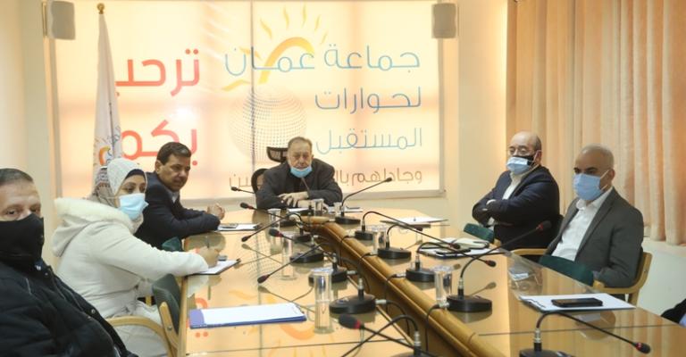 عقد في مقر جماعة عمان لحورات المستقبل اجتماع مشترك بين وفد يمثل نقابة أصحاب المطاعم والحلويات، برئاسة النقيب عمر العواد وبمشاركة عدد من أعضاء مجلس النقابة ومدير النقابة، التي تمثل 22 ألف منشأة ووفد من