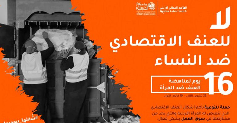 شارك كل من مركز الفينيق للدراسات الاقتصادية والمعلوماتية والمرصد العمالي الأردني العالم أجمع، يوم غد الأربعاء، إطلاق حملة توعوية إعلامية بمناسبة 16 يوما لمناهضة العنف ضد المرأة بعنوان "لا للعنف