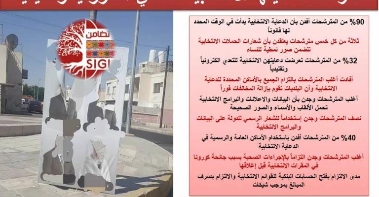 90% من المترشحات أفدن بأن الدعاية الانتخابية بدأت في الوقت المحدد لها قانوناً ثلاثة من كل خمس مترشحات يعتقدن بأن شعارات الحملات الانتخابية تتضمن صور نمطية للنساء 32% من المترشحات تعرضت دعايتهن