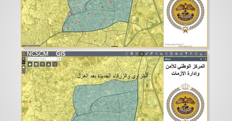 أوضحت صور من نظام الخرائط الجغرافية GIS، لدى المركز الوطني للأمن وإدارة الأزمات، التراجع في أعداد الإصابات في منطقة الزرقاء الجديد والتي تم تنفيذ إجراءات عزل وحظر شامل فيها. ونشر المركز الوطني للأمن